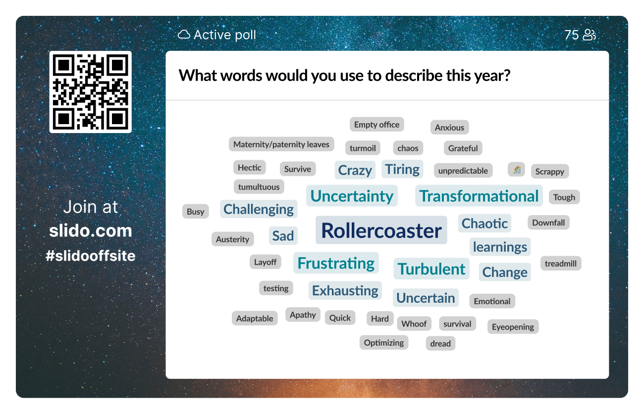 And then came the moment to first involve the audience with a word cloud poll asking What words would you use to describe this year?